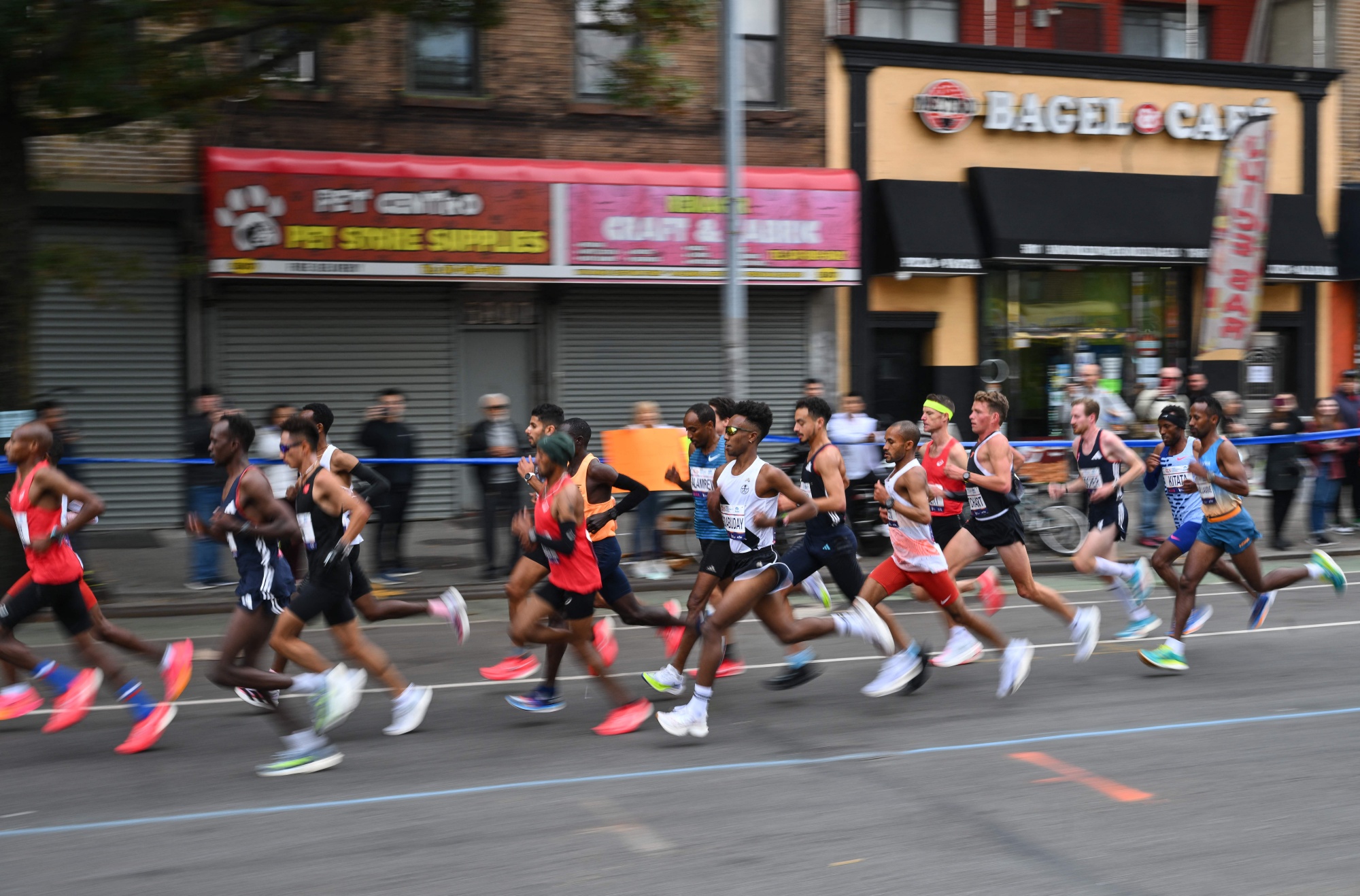 |   |    Runners compete in the Men's division during the 52nd Edition of the New York City Marathon. Photographer: Angela Weiss/AFP/Getty Images Wall Street on the run. Bragging rights aren’t just about bonuses anymore—they’re about marathon times. Bankers and fund managers are splurging on supershoes, altitude tents and elite coaches in a battle to outpace their peers. |  |