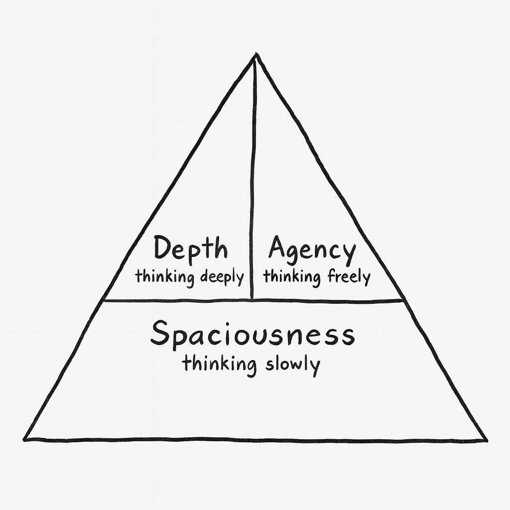 Spaciousness is the foundation of all cognitive luxuries, as it enables both agency and depth. Without mental space and time, you can’t create meaningfully or think deeply.
