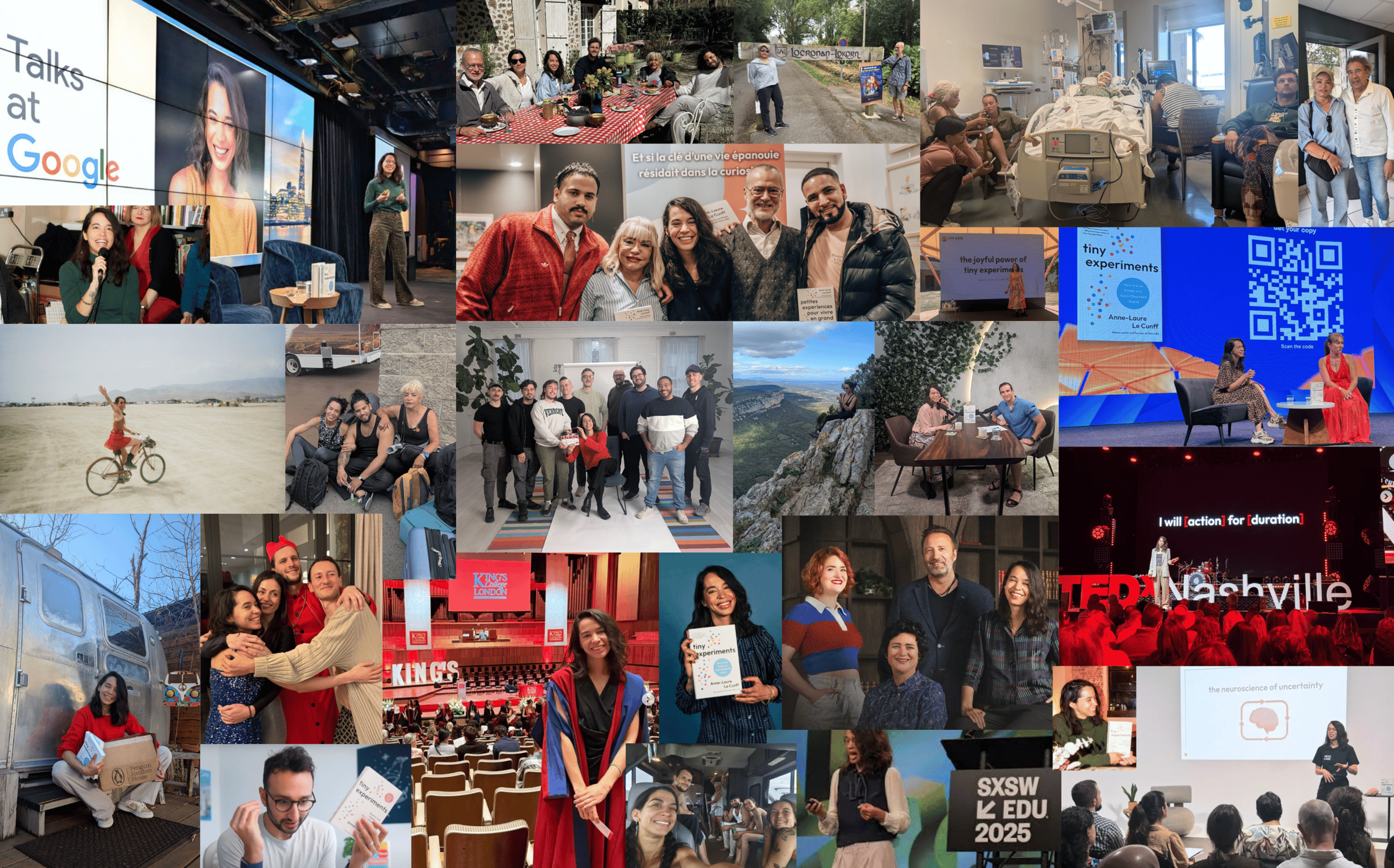 • Published my first book, Tiny Experiments, which is being translated into 18 languages. • Recorded over 100 podcast episodes, including 60 in the lead-up to the book launch (which I do not recommend, more on that later). • Gave dozens of keynotes and lectures with audiences ranging from 10 people to 1000+ including at the University of Oxford, TEDx, SXSW, Talks@Google, Harvard Alumni, and Creative Mornings, and got signed by a public speaking agency. • Produced my first premium course in a studio with a live cohort of leaders. • Received $200k in research funding from the UK government and led data collection for four research studies that are awaiting publication. • Went to Burning Man, where my parents renewed their vows and my dad almost died. • Connected more to the plant world: completed a 9-month herbalism training, made my first tinctures, went on several guided foraging walks, and I managed to keep a plant alive for more than 12 months (a beautiful orchid I named Rocky). • Co-organized a mushroom ceremony for loved ones. • Opened up publicly about my ADHD diagnosis. • Looking through my calendar, I’m shocked at how many cities I visited this year: Paris, Hong Kong, Singapore, New York, Las Vegas, Boston, Boise, Atlanta, Nashville, Oslo, Amsterdam, Marseille, Zürich, Istanbul, the Black Forest in Germany, and I spent almost two months living out of an Airstream in Austin. I also got to visit more of the UK, including Leeds, Lancaster, Driffield, Osea Island, and the New Forest. • Other highlights I don’t want to forget: had my PhD graduation ceremony, joined the reMarkable scientific advisory board, became a contributor for Big Think, downsized the Ness Labs team, and got to meet lots of authors, researchers, and entrepreneurs I admire. I also danced in a sauna, hosted dinners at home, and went on a big hike in Brittany with my parents and siblings for my mom’s 70th birthday.