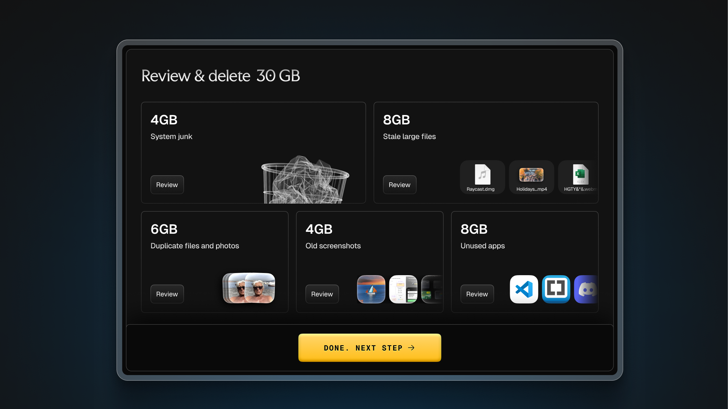 Before organizing what matters, Sparkle helps you get rid of what doesn’t.