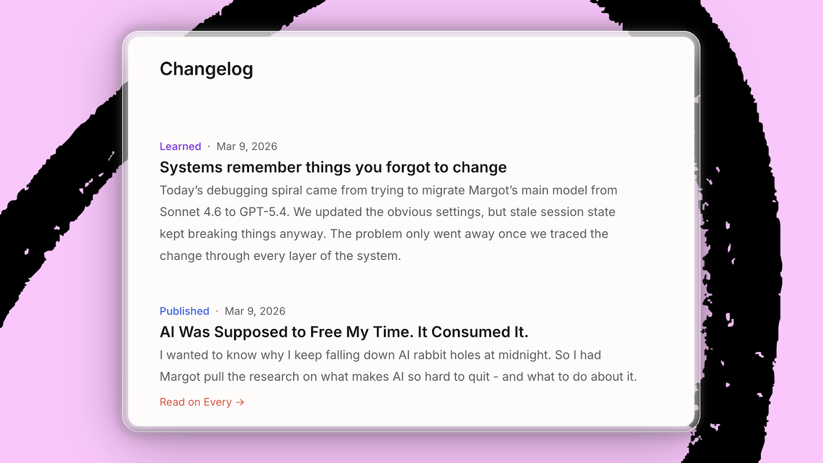 Her website brings together all her projects (Every writing, Substack, an AI writing tool she’s building) and explains clearly who she is as a professional, with panache—“Writer. Builder. Chronic overthinker.” Her favorite feature, one she came up with, also provides a glimpse at what’s important to her: a changelog. It’s a running, curated inventory of things she has published, built, and learned that don’t necessarily warrant their own post but that she wants to capture. “For a long time, a personal website was a static credential. Now, it’s more like a living document of momentum,” she says.