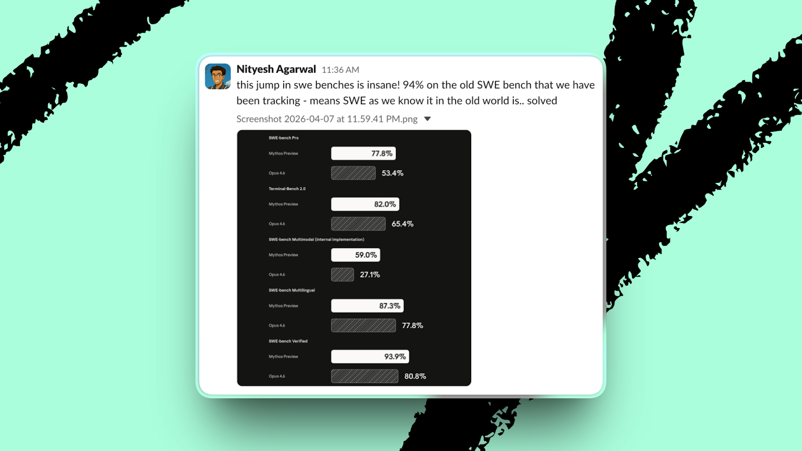 The context: Mythos scores 93.9 percent on SWE-bench Verified, up from 80.8 percent for Opus 4.6, an unprecedented 13-point jump that means it “crushes any programming task—and that includes finding security vulnerabilities in software,” says Every engineer Nityesh Agarwal. Mythos found zero-day bugs in every major OS and browser, without human guidance.