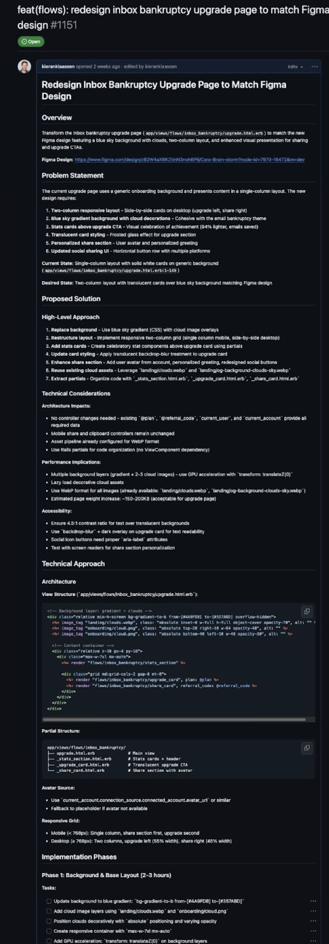 I created an AI agent with one job: Take a Figma design screenshot, analyze how to implement it, and output a detailed plan grounded in our patterns, components, and way of building.