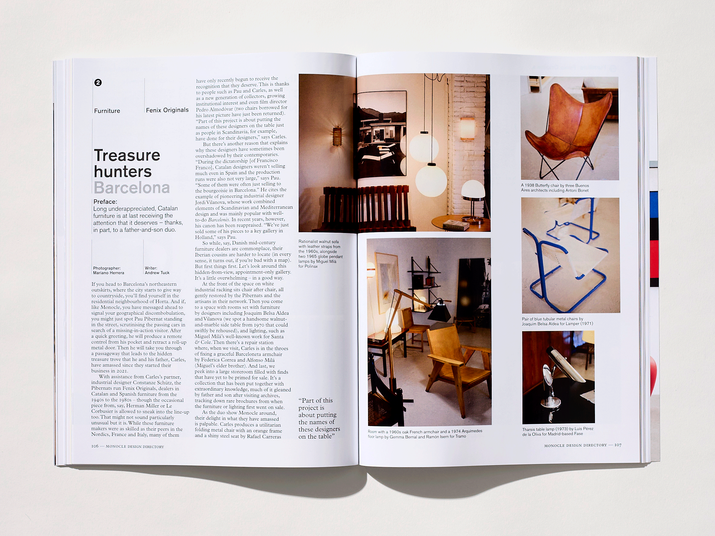 Across its pages, you will find homes with substance, businesses with heft and some gorgeous products. The Monocle Design Directory’s deputy editor, Grace Charlton, took a tour through the Balkans to visit Cold War-era memorials (see below). Known as spomeniks and originally built to recognise conflict and postwar development, these monuments tell a story that is as much about reconciling the past and the present as it is about recognising striking architecture. The report might just inspire your next roadtrip. Meanwhile, Monocle’s editor in chief, Andrew Tuck, paid a visit to the father-and-son duo behind Fenix Originals (pictured, above). This Barcelona-based outfit is drawing attention to forgotten mid-century Spanish designers through the restoration of vintage furniture. It’s a cause that tugs at the heartstrings and provides buyers with unique furniture with which to kit out their homes and offices.
