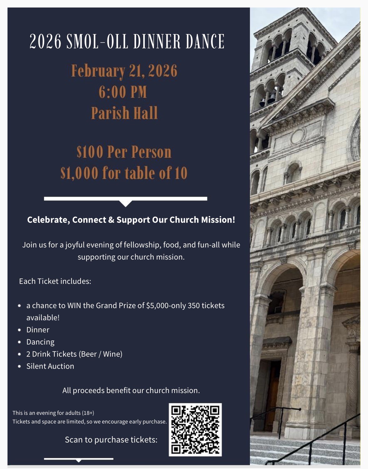 SMOL-OLL is hosting their First Annual Dinner Dance with tickets that include dinner, drink tickets, live music, a silent auction, and one entry into the grand prize raffle for $5,000 in cash.