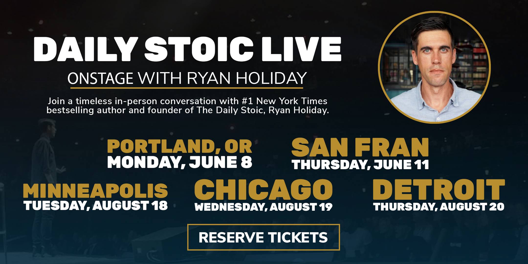 You’re already part of our dedicated community of nearly a million Daily Stoic readers all over the world—collectively the largest group of Stoics in history. Let’s get this community together for a live evening dedicated to Stoic wisdom. Join me for an in-depth conversation about philosophy, insights into my Stoic Virtues book series, and a rare opportunity to shop signed books, Daily Stoic medallions, and more from the Daily Stoic collection.