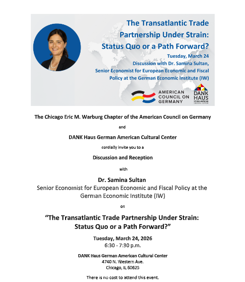 Join the American Council on Germany at the DANK Haus for a discussion and reception with Dr. Samina Sultan, Senior Economist for European Economic and Fiscal Policy at the German Economic Institute (IW).