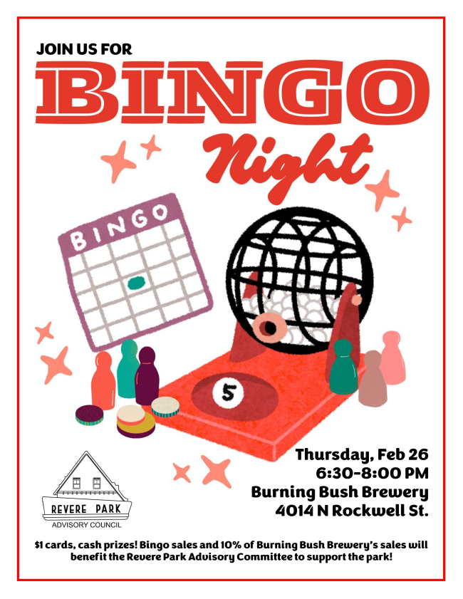Revere Park Bingo Night, February 26th, at Burning Bush at 6 PM