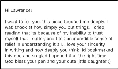 I’ve been writing this newsletter for a number of years now, and I’ve received so many heartening messages from people around the world. Here’s one I received earlier this week: