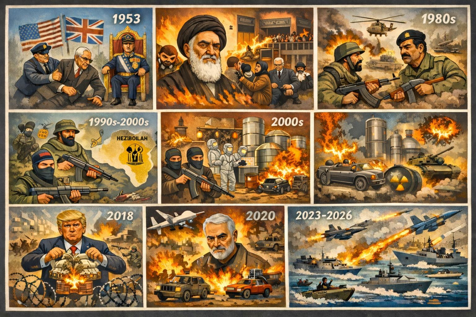El enfrentamiento entre Estados Unidos, Israel e Irán no empezó ayer, ni siquiera con el programa nuclear iraní. Es el resultado de más de 70 años de historia, golpes de Estado, revoluciones, guerras… ha habido de todo y, precisamente por eso, vamos a hacer un buen repaso. |