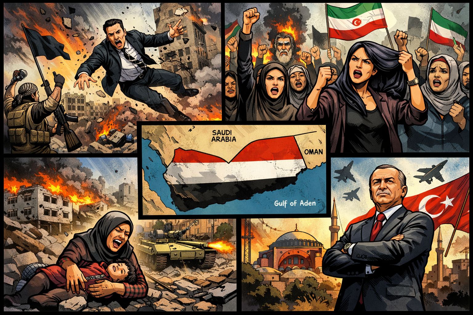 | ¿Cuáles han sido los últimos “GRANDES CAMBIOS” de Oriente Medio? | | Los acuerdos de Abraham (2020): Buscan la normalización de las relaciones árabe-israelíes con las petromonarquías y Marruecos. Son la antesala de los atentados en Israel y del posterior conflicto entre Israel-Hamás. Turquía entra en crisis y cambia de rumbo (2021): En este punto Recep Tayyip Erdoğan revisa la política exterior turca. Ankara reduce su estrategia de confrontación y abre una etapa de pragmatismo diplomático, buscando normalizar relaciones con otras potencias regionales. El regreso del conflicto Palestino (2023): Tras el ataque de Hamás del 7 de octubre de 2023, la intervención israelí en Gaza y el genocidio perpetrado por Israel, Palestina vuelve al centro del debate internacional. Los ataques de los hutíes (principios de 2024): La interrupción de una de las principales arterias del comercio mundial fuerza la formación de una coalición naval internacional, liderada por Estados Unidos, con el objetivo de garantizar la seguridad marítima. La caída del régimen de Al-Assad en Siria (finales de 2024): La caída de Al-Assad supone un duro golpe para Irán y sus aliados. Turquía, que ha apoyado a las fuerzas rebeldes celebra la caída como una oportunidad para limitar a los kurdos. Arabia Saudí e Israel también celebran la debilidad iraní. Los enfrentamientos entre Irán e Israel y la guerra de los 12 días (2024-2025): Tras años de confrontación indirecta, Irán e Israel protagonizan en 2024–2025 su choque más directo hasta la fecha. El conflicto, breve pero intenso, evidencia la fragilidad de la disuasión regional.