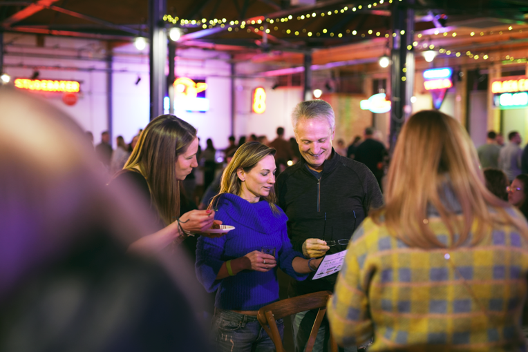Includes a commemorative tasting glass and food and drink samples from local food and Malt Row businesses in the Ravenswood Event Center Billboard Showroom