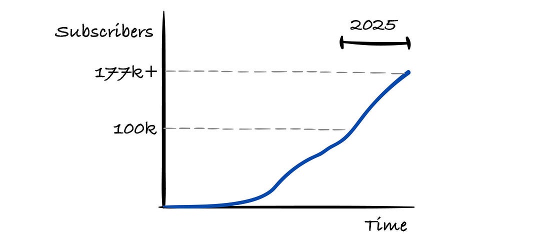 104 articles in 2025 (2x per week → Wednesday’s article for paid subscribers and Sunday’s article for everyone)