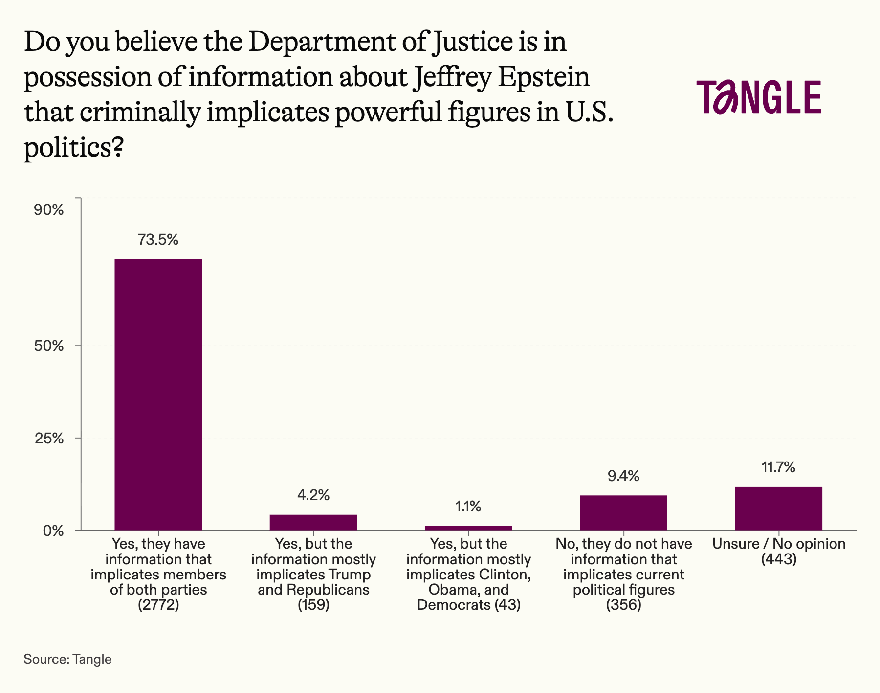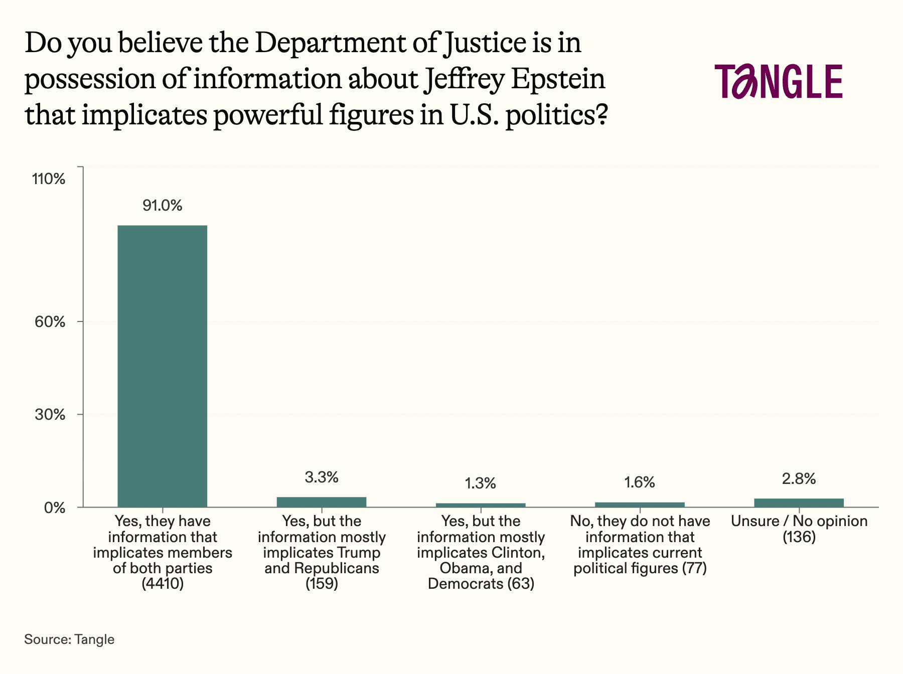 - Thursday’s survey: 3,773 readers responded to our survey on the latest Epstein files with 74% believing the government possesses information incriminating powerful people. “The issue here goes beyond sex trafficking and sexual abuse. It tells a tale of power elites, influence and power peddling which implies corruption. It should be investigated in great detail,” one respondent said. “If there is nothing more to be learned from the rest of the files then just release them and be done with it,” said another.